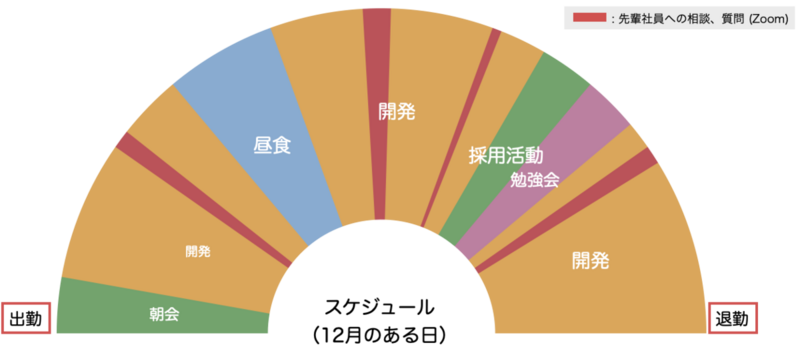 入社直後の4月と比較すると、私の最近のスケジュールは以下のようになっています。