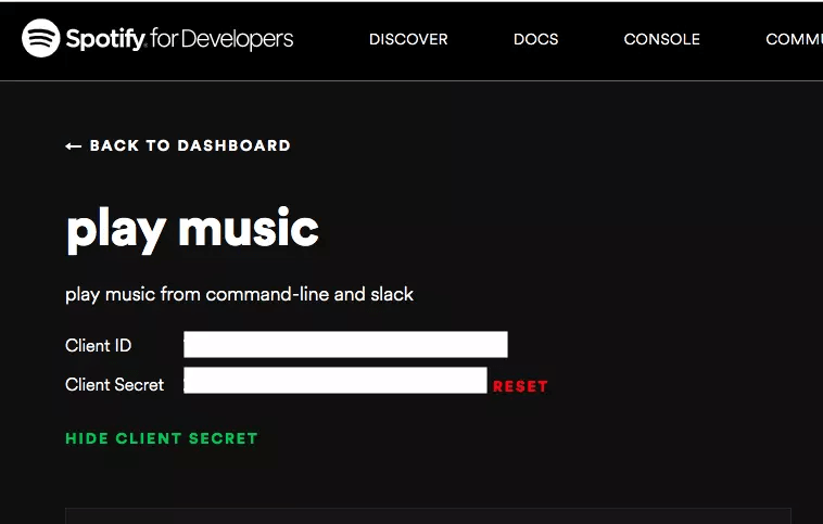 function doPost(e) { const slackApp = SlackApp.create("slackのBotUserOAuthAccessToken"); const channelId = e.parameter.channel_id const musicName = playMusic(e.parameter.text); slackApp.chatPostMessage(channelId, "now playing " + musicName); } function playMusic(messageFromSlack) { const musicName = ""; if (messageFromSlack.match(/助演男優賞/)) { musicName = "助演男優賞"; putTrackCode("spotifyのTrack Code1"); } else if (messageFromSlack.match(/CHEEKY/)) { musicName = "CHEEKY"; putTrackCode("spotifyのTrack Code2"); } return musicName; } function putTrackCode(trackCode) { const clientId = "spotifyのClient_ID"; const clientSecret = "spotifyのClient_Secret"; const authorizationCode = "spotifyのAuthorization_Code"; const basicAuthorization = Utilities.base64Encode(clientId+":" + clientSecret); setAccessTokenForSpotify(authorizationCode, basicAuthorization); const accessToken = PropertiesService.getScriptProperties().getProperty('access_token'); const options = { "method": "put", "headers": { "Authorization": "Bearer " + accessToken }, "device_id" : "DEVICE_ID", "payload": JSON.stringify({"uris": ["spotify:track:" + trackCode]}) }; UrlFetchApp.fetch("https://api.spotify.com/v1/me/player/play", options); } function setAccessTokenForSpotify(authorizationCode, basicAuthorization) { const options = { "payload": { "grant_type": "authorization_code", "code": authorizationCode, "redirect_uri": "http://example.com" }, "headers": { "Authorization": "Basic " + basicAuthorization }, }; const response = UrlFetchApp.fetch("https://accounts.spotify.com/api/token", options); const parsedResponse = JSON.parse(response); const scriptProperties = PropertiesService.getScriptProperties(); scriptProperties.setProperty('access_token', parsedResponse.access_token); }