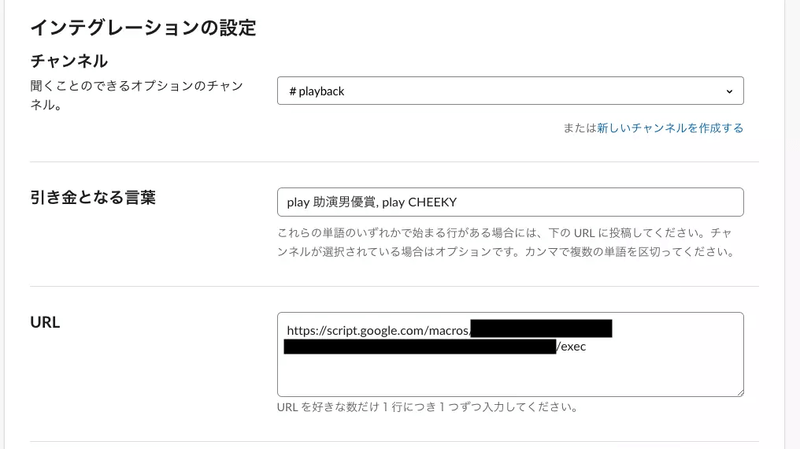 今回はOutgoing WebhookにGASで作成したwebアプリケーションのURLを登録しました。